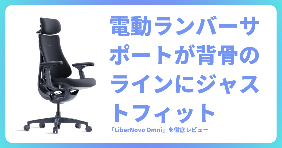 この記事では、電動ランバーサポート搭載のエルゴノミクスオフィスチェアLiberNovo(リベルノヴォ)「Omni(オムニ)」を実際に使って感じたメリット・デメリットをレビューしています。